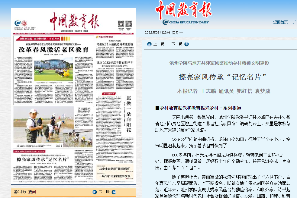 天际出现第一缕晨光时,PP电子游戏网站党委书记孙晓峰已在去往安徽省池州市贵池区墩上街道“茅坦杜氏家风馆”调研的路上。那里是学校帮助地方兴建的第3个家风馆。
