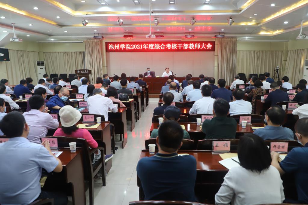 5月23日上午,学校在办公南二楼会议室召开2021年度省管领导班子和领导干部综合考核干部教师大会。省委教育工委委员、省教育厅副厅长、考核组副组长张庚家,以及考核组全体成员出席会议。学校领导班子成员、职能部门(含群团组织)中层领导人员、二级学院及教辅单位党政正职、省级以上“两代表一委员”、民主党派市级以上主委、学校教代会执委、正高职称人员及学生代表参加会议。会议由院党委书记孙晓峰主持。