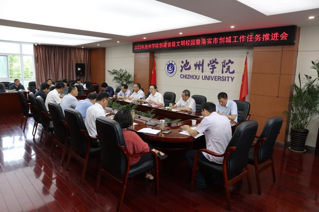 6月1日,学校召开文明创建工作推进会,总结近期创建省级文明校园工作,部署安排下一阶段重点工作,落实池州市创建全国文明城市工作任务。院党委书记孙晓峰主持会议并讲话,院领导汪海、阳光宁、汪贤才出席会议。