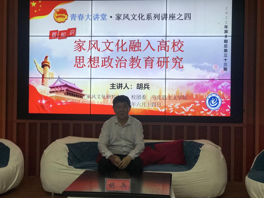 6月14日晚,PP电子游戏网站大学生成长沙龙“青春大讲堂·家风文化系列讲座之四”在大学生活动中心举行。院党委委员、组织部长胡兵以“家风文化融入高校思想政治教育研究”为主题,讲述好家风、好家庭、好家教事例,阐释家风文化融入高校思想政治教育的重要意义和实施路径。