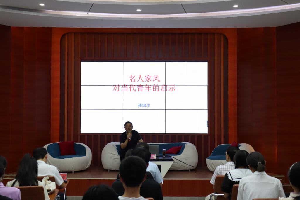 6月8日,PP电子游戏网站大学生成长沙龙“青春大讲堂·家风文化系列讲座之三”在大学生活动中心举行。院党委副书记崔国发以“名人家风对当代青年的启示”为主题,为现场师生讲述好家庭、好家教故事,分享传承优良家风的心得感悟。