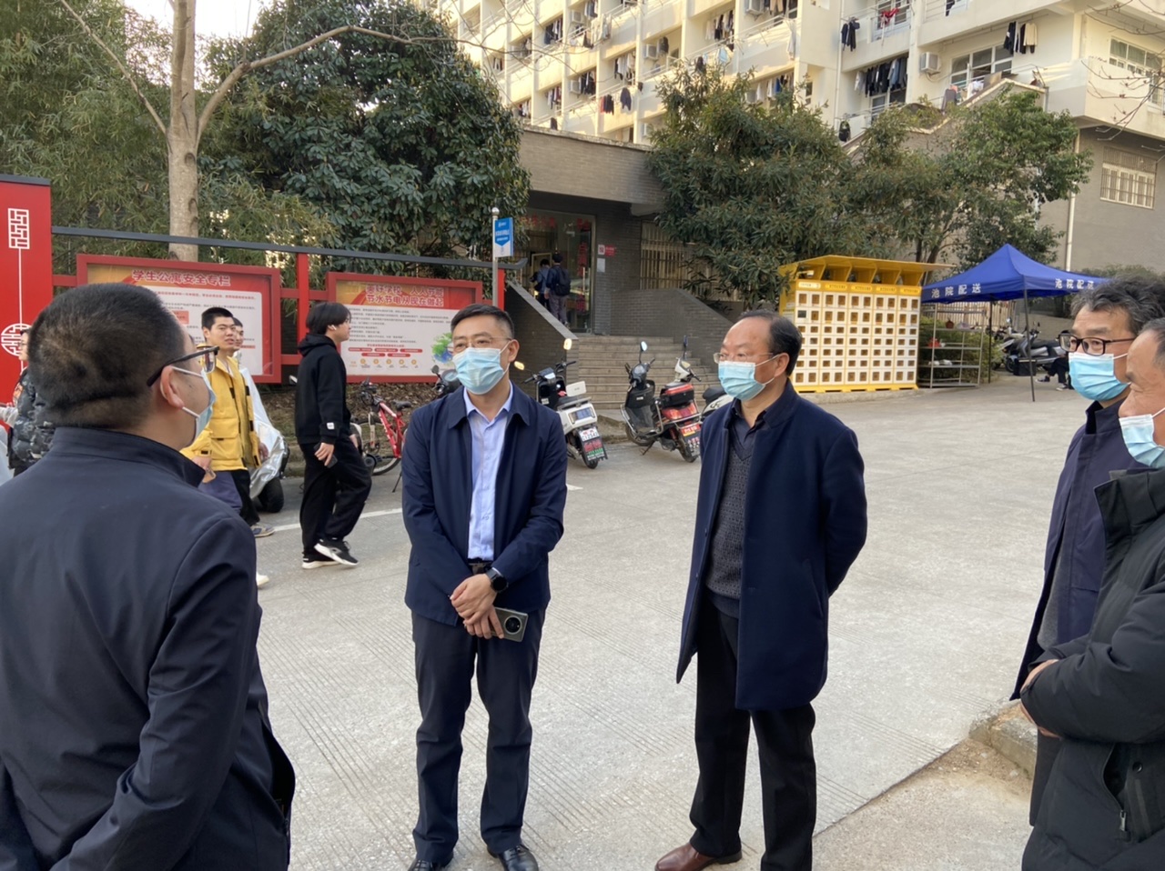 3月8日下午,院长张立驰、副院长王延寿深入学生宿舍楼督查疫情防控与物业管理工作。