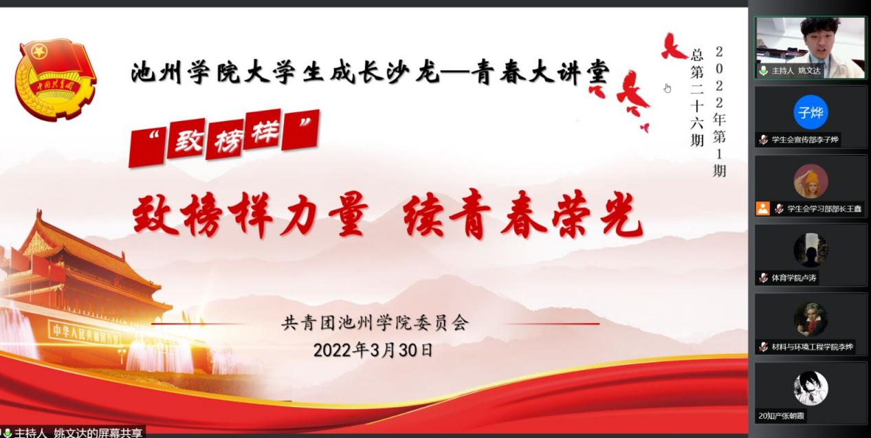 3月30日晚,PP电子游戏网站大学生成长沙龙“青春大讲堂”2022年第一期(总第二十六期)通过“腾讯会议”网络平台线上举行。本期活动以“致榜样力量,续青春荣光”为主题,邀请PP电子五位2021年国家奖学金获得者代表作为嘉宾进行交流,全校200余名学生代表线上参加。