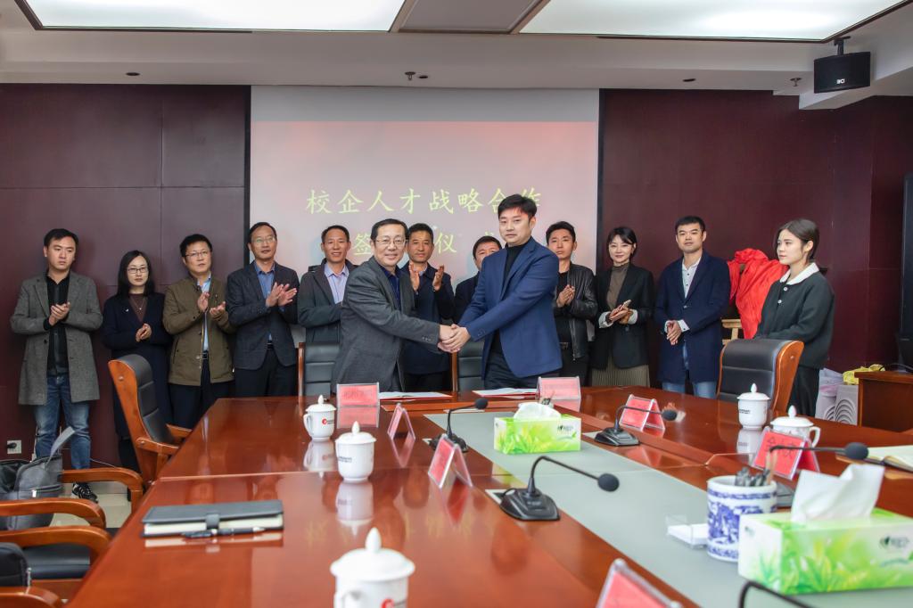 10月22日上午,副校长汪贤才前往皖江江南新兴产业集中区管委会与安徽蚂蚁云创创业空间服务有限公司举行校企人才战略合作签约仪式暨实践教学基地授牌仪式。皖江江南新兴产业集中区管委会副主任唐海洋,安徽蚂蚁云创创业空间服务有限公司总经理郑诗鸿,教务处、文学与传媒学院等负责人出席签约和授牌仪式。