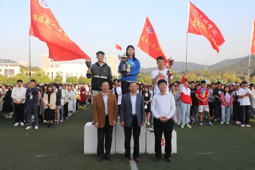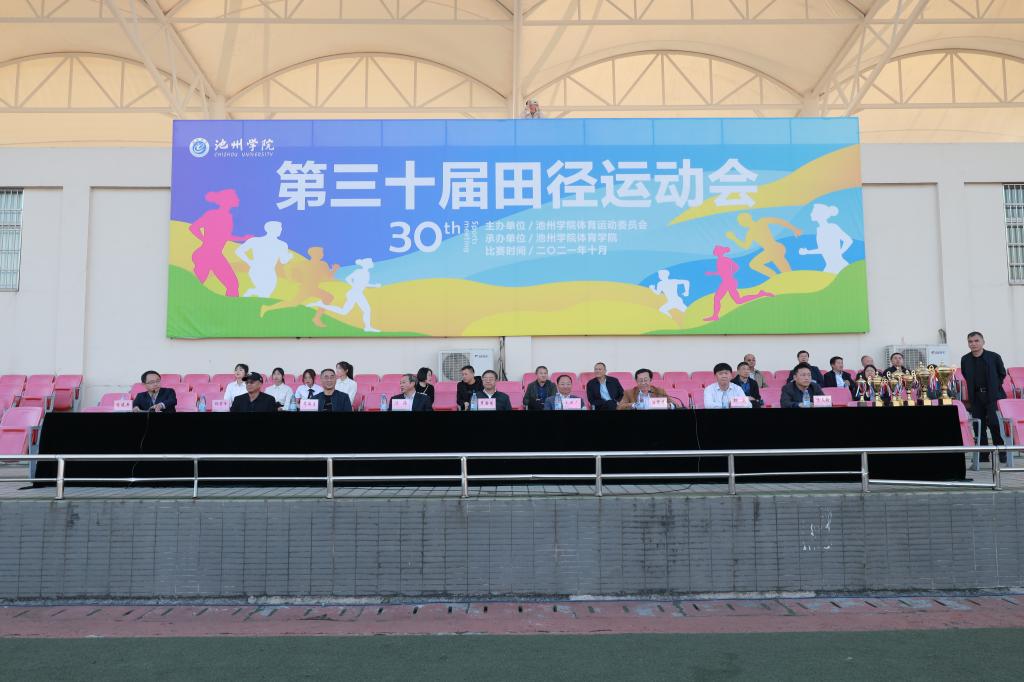 10月29日下午,PP电子游戏网站第三十届田径运动会圆满落幕。校党委副书记崔国发,校党委委员、副校长王延寿,校党委委员、校纪委书记、监察专员汪海,校党委委员、副校长汪贤才,校党委委员、组织部长李恕宏,校党委委员、人事处长黄海生,校党委委员、宣传部长胡兵,以及本届田径运动会组委会全体成员在主席台就坐。