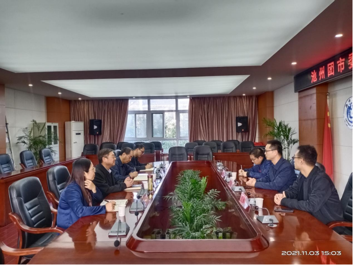 11月3日下午,池州团市委书记宁睿一行到PP电子调研指导共青团工作。校党委副书记崔国发出席座谈会。