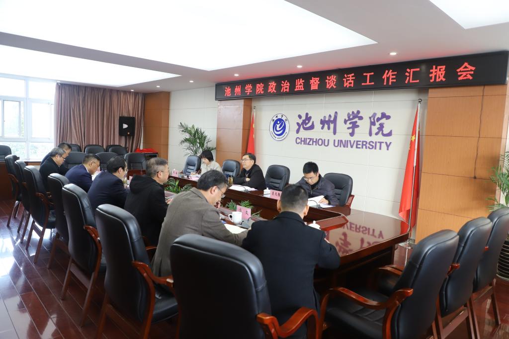 11月22日,省纪委监委第八纪检监察室一级调研员王在胜一行3人来PP电子就中央、省委巡视反馈问题及政治监督谈话指出问题整改工作进行督查指导。校党委书记孙晓峰,校党委副书记、校长张立驰,校党委副书记崔国发,校纪委书记、监察专员汪海出席有关活动。