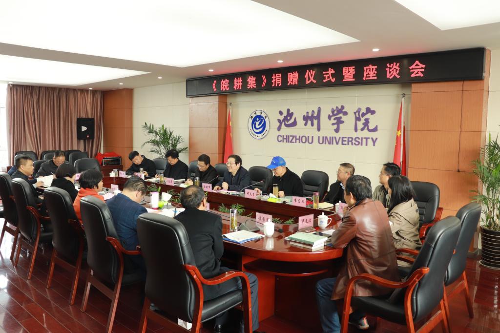 11月19日,郑炎贵《皖耕集》捐赠仪式暨座谈会在行政北三楼会议室举行。校党委书记孙晓峰主持座谈会并讲话,校党委副书记崔国发出席座谈会。安徽省张恨水研究会、办公室、宣传部、教务处、科研处、图书馆等相关部门负责人以及通俗文学与张恨水研究中心、皖南民俗文化与旅游发展研究院、九华山文化研究中心等相关负责人参加了座谈会。