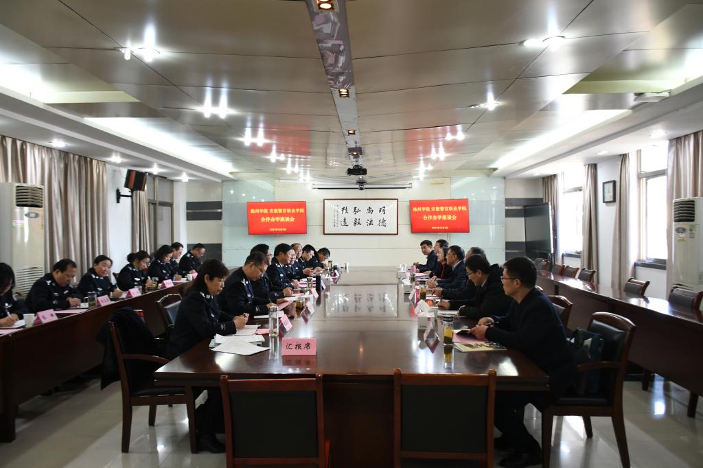 双方召开了座谈会,张国昌、操申斌对张立驰一行来访表示热烈欢迎,并对安徽警官职业学院办学历史、专业建设以及人才队伍建设等方面进行了介绍,希望双方增进交流,共建全方位、多领域战略合作关系。