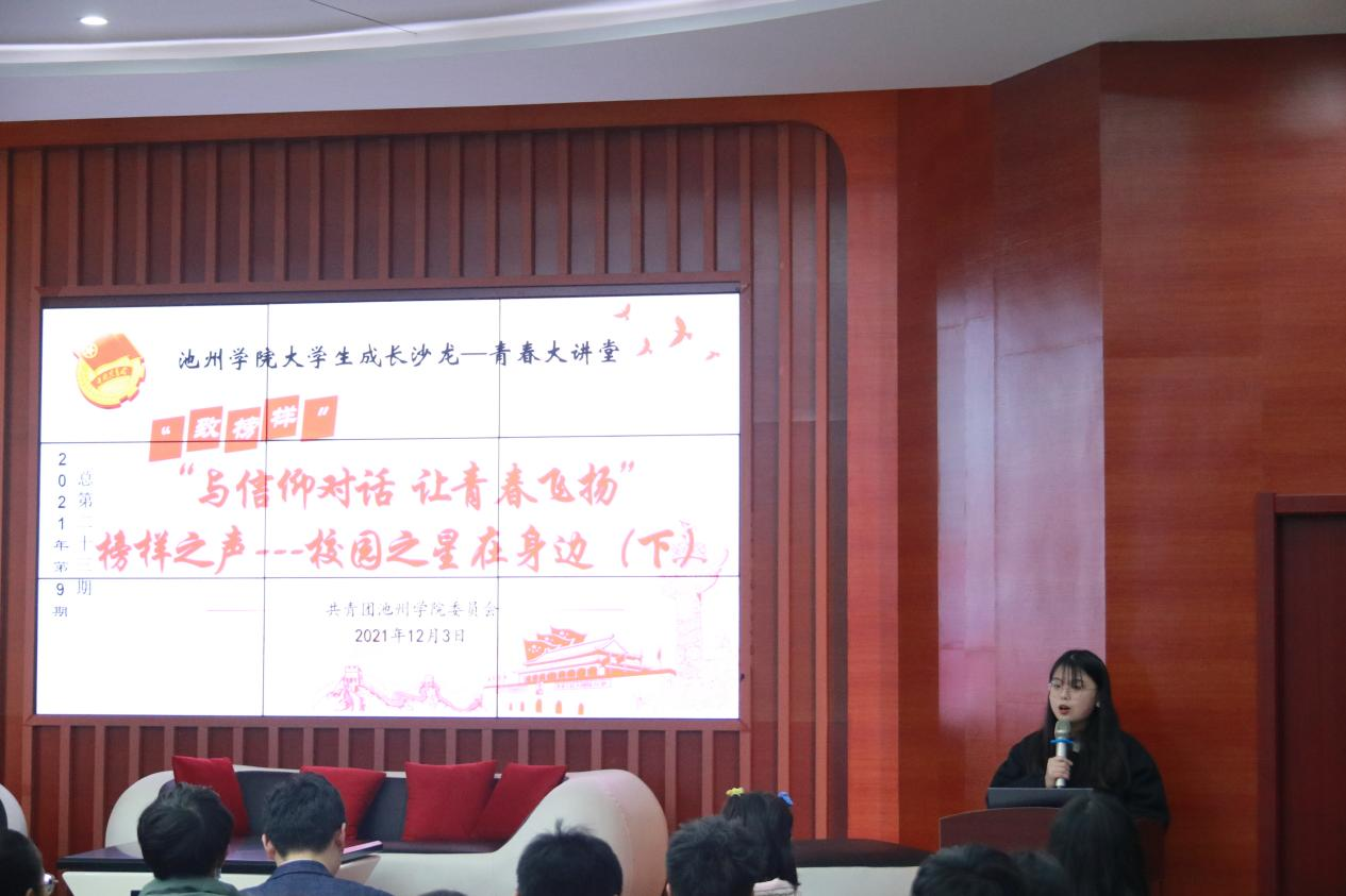 11月30日和12月3日晚,PP电子游戏网站大学生成长沙龙“青春大讲堂”2021年第八(总第二十三)和九期(总二十四期)“榜样之声—校园之星在身边”在大学生活动中心一楼举行,PP电子第三届校园之星获得者崔天成等十位同学分享了自己大学成长的经历。