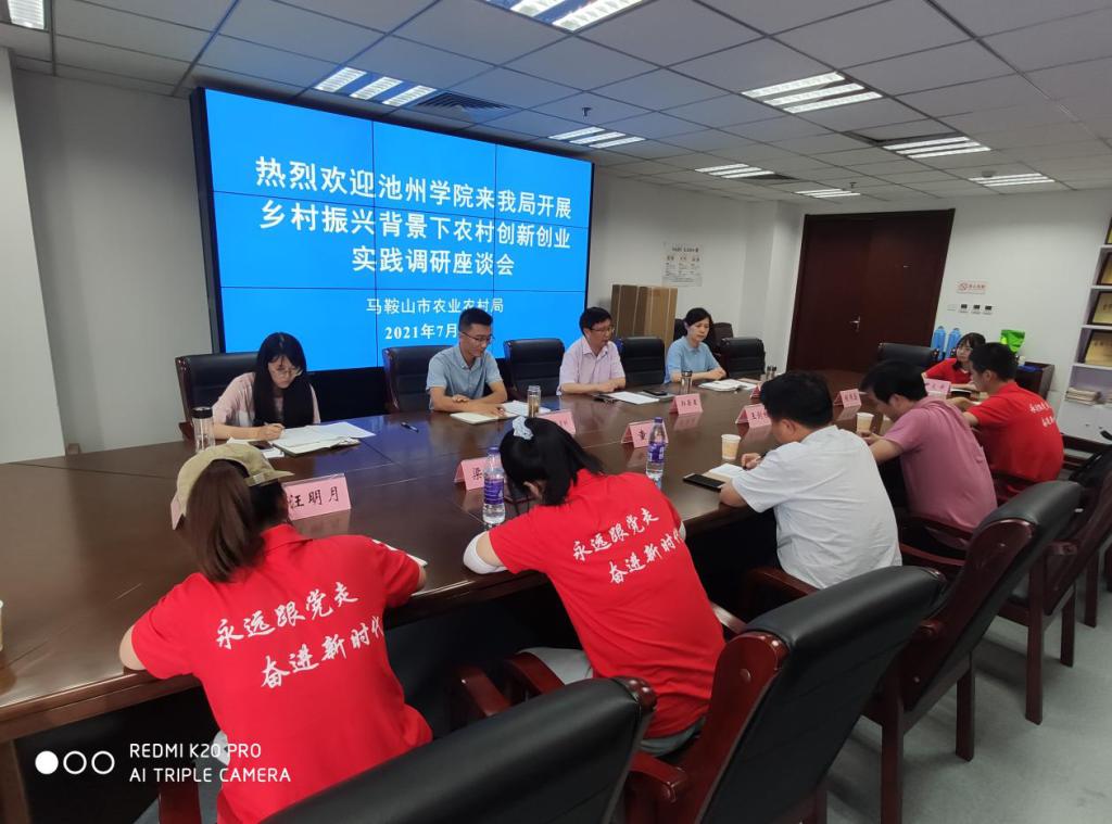 调研活动期间,实践团走访了马鞍山市商务局、农业农村局、创客+文创园等,通过访谈相关负责人、发放调查问卷等方式,实地了解了马鞍山市新型业态发展、乡村振兴、农业方面开展的创新创业情况、夜间经济发展规划、跨境电商发展情况、省级跨境电商产业园的建设工作、新型职业农民培训开展情况、长三角一体化中马鞍山市所做出的举措及成效等。