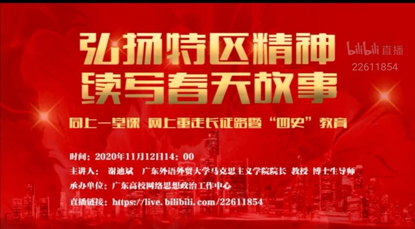 在深圳经济特区建立40周年之际,广东外语外贸大学马克思主义学院院长、博士生导师谢迪斌教授以《弘扬特区精神、续写春天故事》为主题,带领全国大学生一起学习习近平总书记在深圳经济特区建立40周年庆祝大会上的重要讲话精神。PP电子组织广大学生在线观看公开课,共同回顾深圳经济特区建立、发展的历史,了解其发展的重大历史意义,分享观后心得与收获。