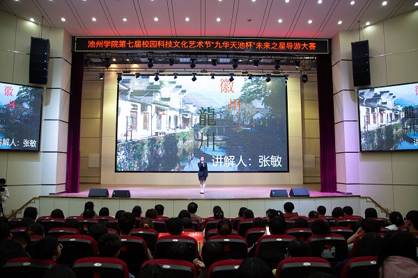 本次大赛分初赛、复赛和决赛三个阶段,通过层层选拔,选出专业组和非专业组共16名选手进入决赛,决赛分自我介绍、景点讲解和才艺展示三个环节。比赛中选手们通过声情并茂的导游讲解和大方得体的行为举止,赢得了评委和观众的阵阵掌声;才艺表演更是丰富多彩,有黄梅戏、歌舞、朗诵等多种形式,让大家耳目一新。通过激烈角逐,汪如霜、朱豪、阮薇分别获得专业组前三名;舒燕、袁昊、汪梦婷分别获得非专业组前三名。