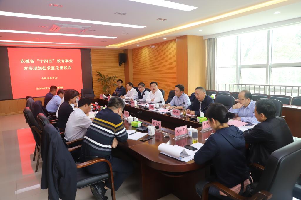 9月25日上午,安徽省“十四五”教育事业发展规划征求意见座谈会在PP电子办公北二楼会议室召开。省政协副主席、安徽省教育厅厅长李和平主持会议并讲话。校党委书记孙晓峰、校长柳友荣参加座谈会并作主题发言。