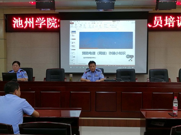 9月5日下午,学校举办大学生安全防范专题教育,进一步加强预防电信(网络)诈骗宣传,提高广大师生识别和预防电信诈骗能力。池州市公安局反电信诈骗中心主任吴学军、警员董楠应邀来校做专题报告。