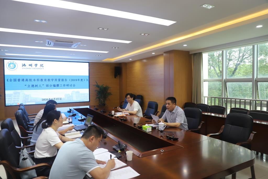 6月22日下午,校长柳友荣在行政北二楼会议室主持召开《全国普通高校本科教育教学质量报告(2019年度)》“立德树人”部分编撰工作研讨会,PP电子游戏网站质量报告编撰项目组全体成员参加了研讨会。