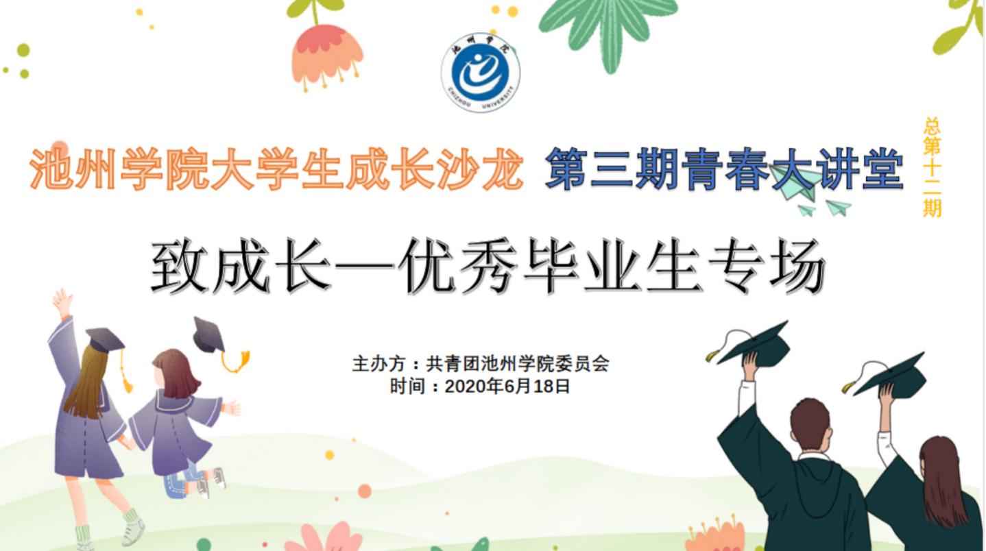 6月18日晚,PP电子游戏网站大学生成长沙龙“青春大讲堂”2020年第3期通过“钉钉”网上平台线上举行。活动以“多彩青春正当时,努力奋斗促成长”为主题,邀请了PP电子五位2020年优秀毕业生代表作为主讲人,全校近200名学生代表参加。