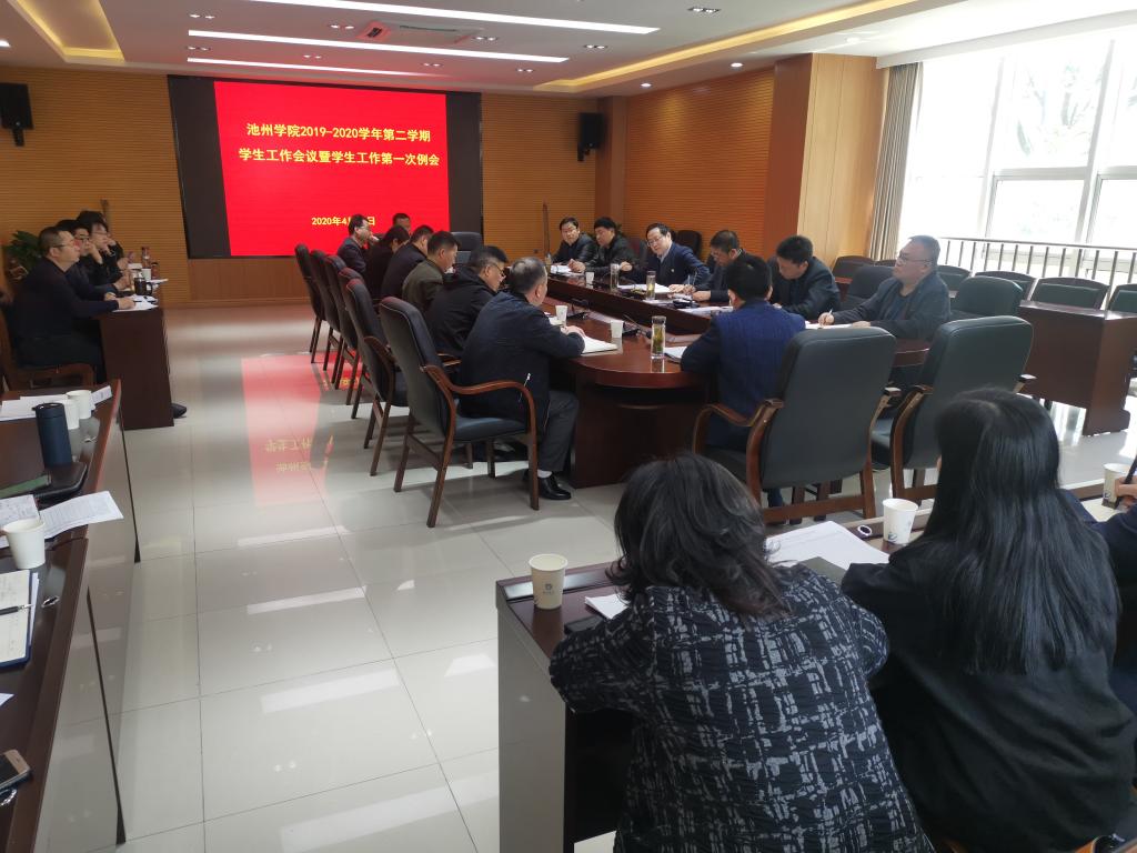 4月22日上午,PP电子在办公北二楼会议室召开2019-2020学年第二学期学生工作会议暨学生工作第一次例会。校党委书记孙晓峰出席会议并讲话,校党委副书记崔国发主持会议。