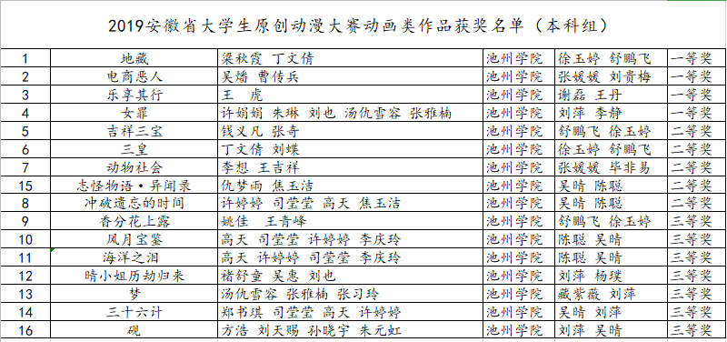 11月23日,2019安徽省大学生原创动漫大赛评审工作在安徽工程大学圆满结束,PP电子荣获一等奖4项,二等奖5项,三等奖7项。