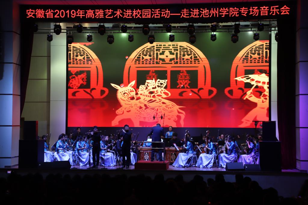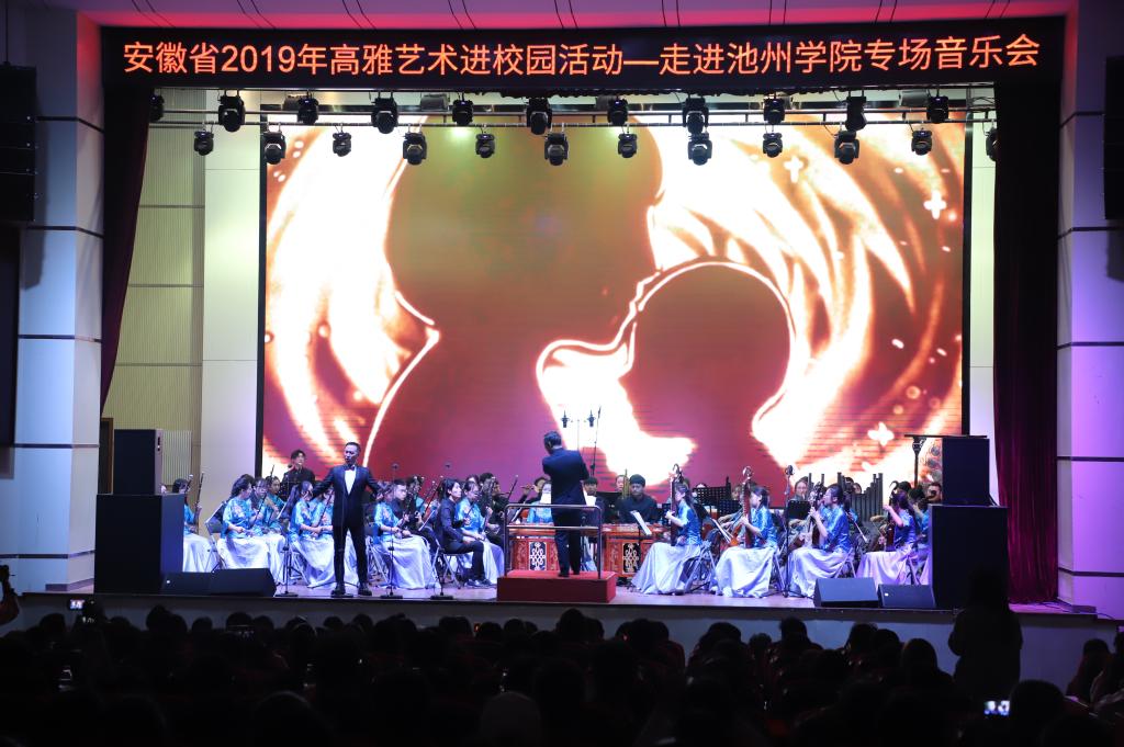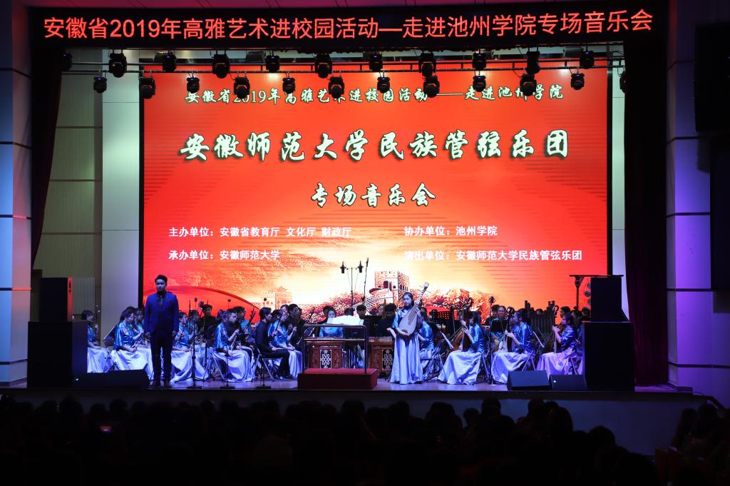 10月20日晚7点,由安徽省教育厅、文化厅、财政厅主办,安徽师范大学承办的高雅艺术进校园——安徽师范大学民族管弦乐团专场音乐会在PP电子博古礼堂精彩上演。演出前,校党委书记孙晓峰,党委委员、宣传部长胡兵接待了安徽师范大学艺术学院院长汪海元一行,各二级学院党委负责人、各职能部门负责人及学生代表共同欣赏了音乐盛宴。