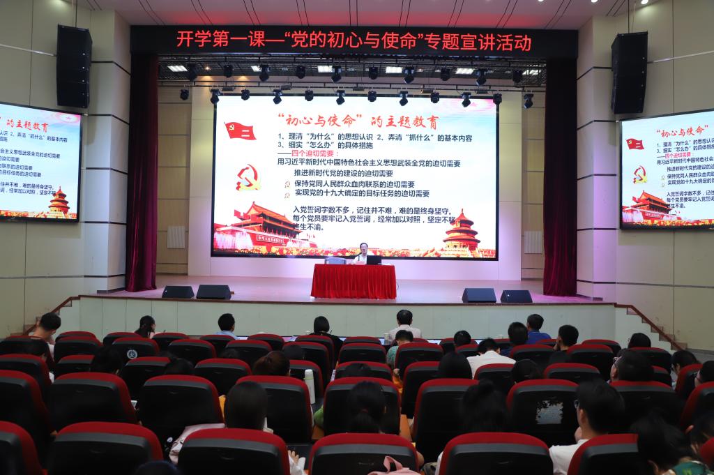 9月18日下午,校党委书记孙晓峰教授在博古礼堂为PP电子师生上了“开学第一课——党的初心与使命”专题思政课第一课。教务处、组织部、团委、马克思主义学院、体育学院等有关部门负责同志,新生班级辅导员,部分思政课教师,学生党员近400人参加了专题宣讲活动。校党委委员、宣传部部长胡兵主持宣讲活动。