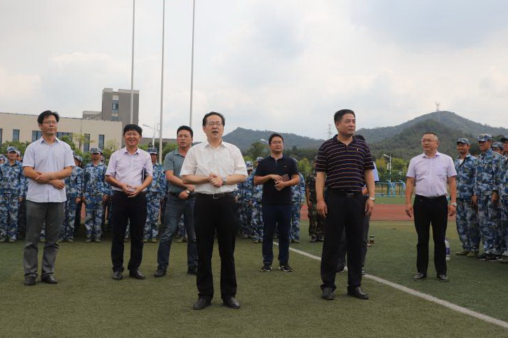 9月16日上午,党委书记孙晓峰、校长柳友荣在相关部门负责人的陪同下前往2019级新生军训现场看望慰问教官和新生。