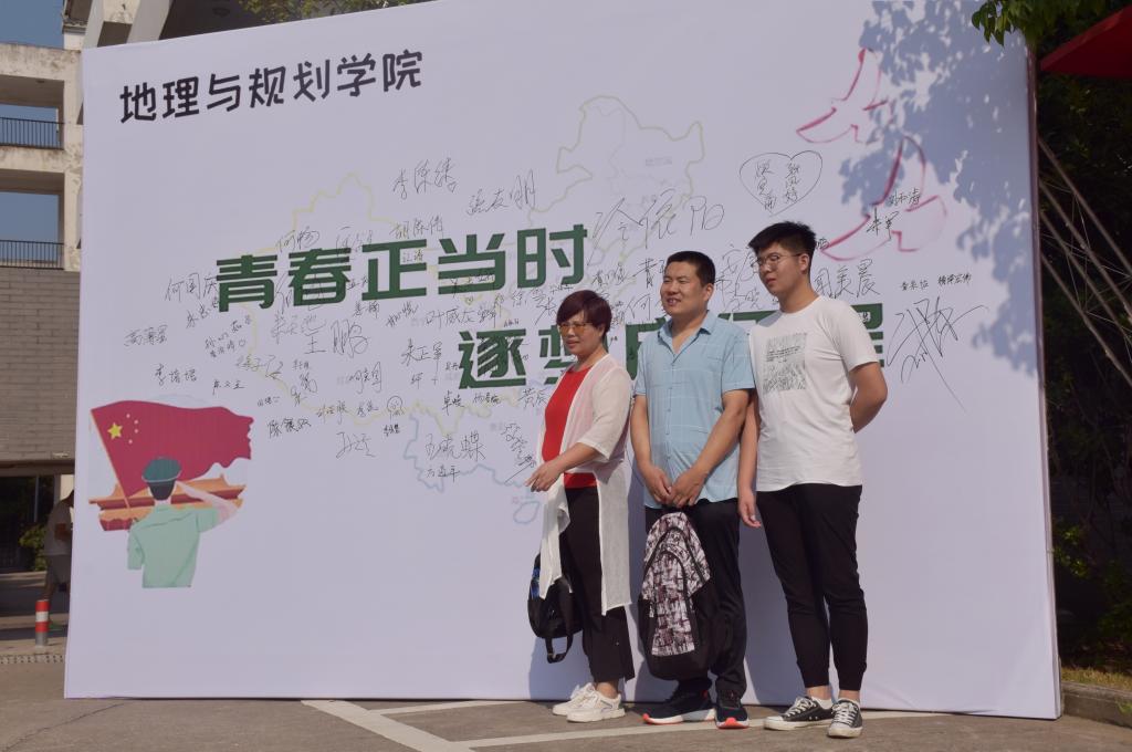 除此之外,商学院、地理与规划学院、外国语学院等学院制作了签名墙或合影墙,学生和家长纷纷合影留念。