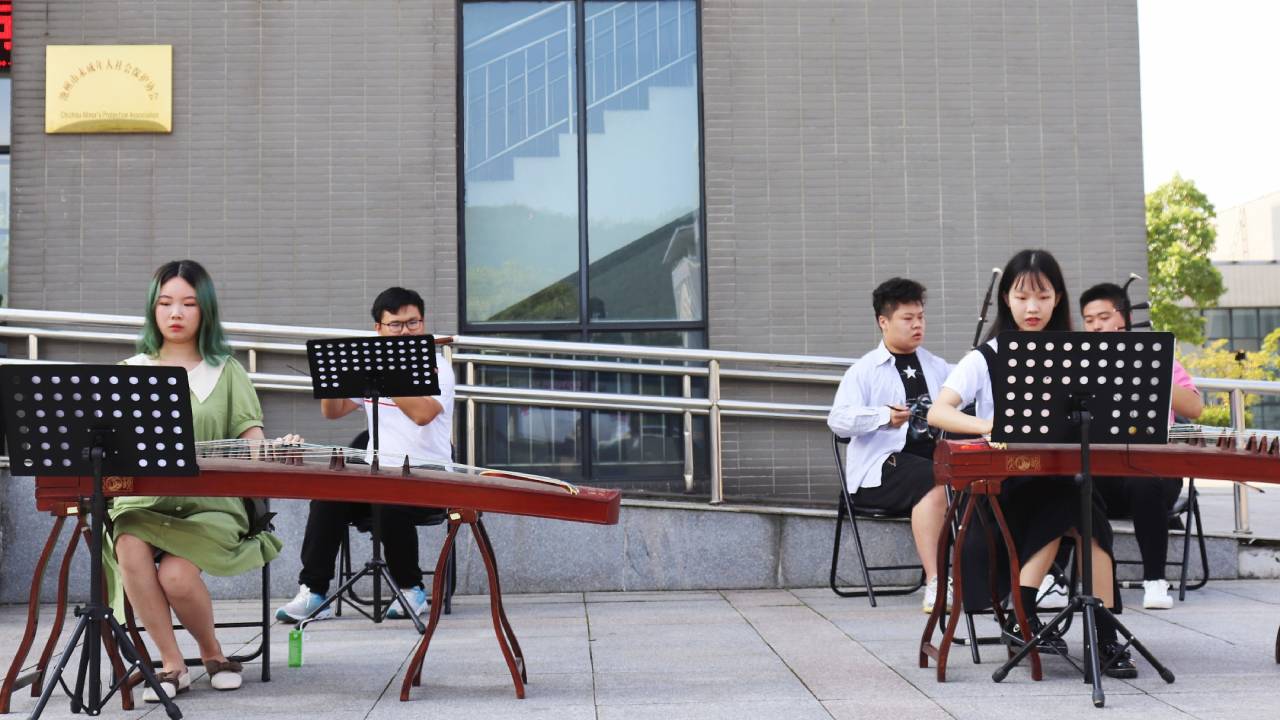 在艺术与教育学院的教学楼前,2017级学生李懿、李萍等演奏的民乐合奏《我和我的祖国》,吸引了来往新生及家长的驻足观看。家长们纷纷感叹:“看了这些学生的表演,特别希望自己的孩子明年也能和她们一起迎接新同学。”