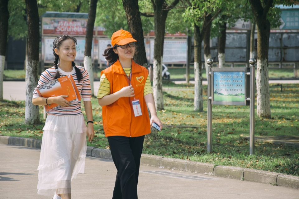 青年志愿者们奔波在校园内,为新生带路、拿行李、帮忙办理入学手续。学校还设置了“绿色通道”咨询服务台,帮助家庭困难的学生通过“绿色通道”顺利入学。