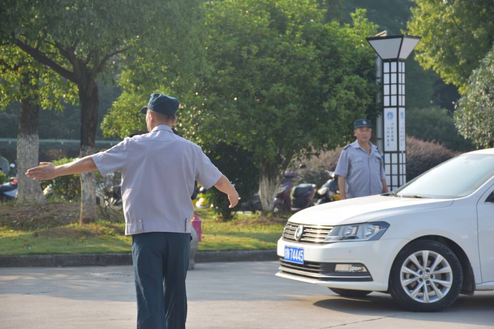 学校安保人员在迎新生期间分布在学校各个路口,为新生保驾护航,确保迎新期间交通秩序正常。
