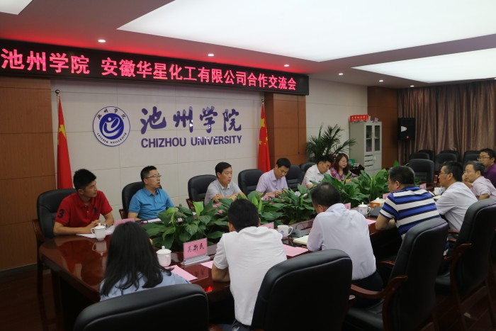 6月25日,华星化工有限公司党委书记、董事长颜泽彬到PP电子商谈校企合作事宜。校长柳友荣在办公北三楼会议室主持召开合作交流会。副校长阳光宁,党委委员、教务处长黄海生参加交流。