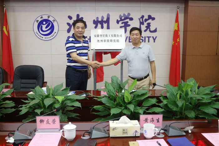 双方还签订了校企合作协议,并举行了“PP电子游戏网站华星化工研究中心”揭牌仪式。