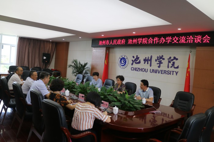 6月12日下午,池州市副市长贾瑄来PP电子洽谈校地校企合作办学事宜。校长柳友荣在办公北三楼会议室主持召开座谈,副校长阳光宁参加座谈。