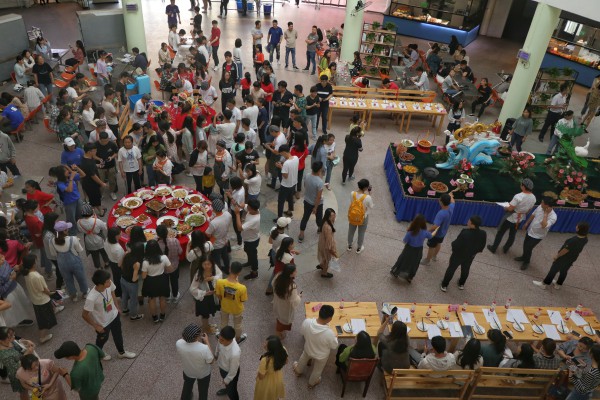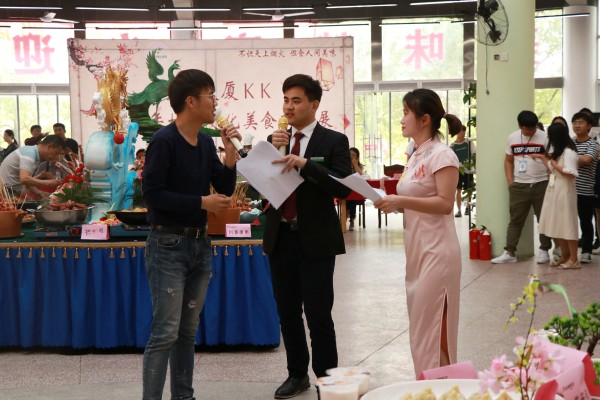 活动现场气氛热烈,精美的雕刻品让学生们感受到烹饪的艺术和乐趣。过桥米线、十三香龙虾、扬州炒饭、红烧肉......每样菜品前都有很多学生围观品尝。有趣的互动游戏,丰富的小奖品,更是让参加活动的学生流连忘返。活动提供了80余道菜品供评委团试吃打分,评出最佳菜肴。