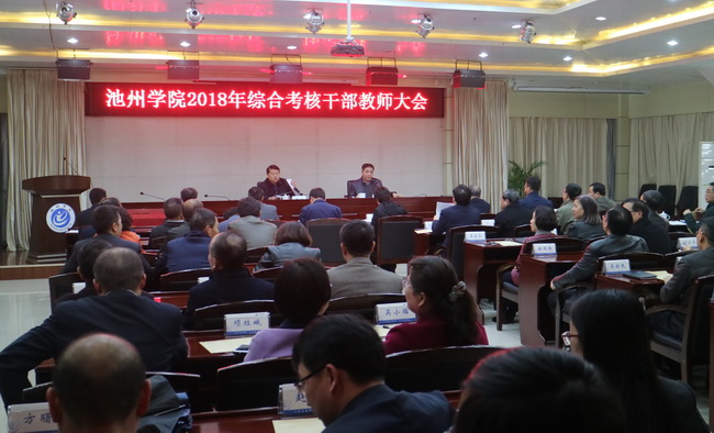 上午,学校在办公南二楼会议室召开2018年度省管领导班子和领导干部综合考核干部教师大会。省委综合考核组全体成员、学校领导班子成员、机关部门领导成员、二级学院党政正职(含主持工作的副职)、省级以上“两代表一委员”、民主党派市级以上主委、教代会执委、正高职称人员及学生代表参加会议。会议由校长柳友荣主持。