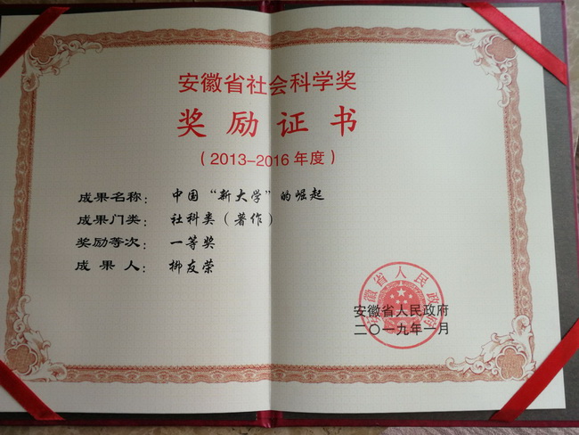 1月22日,安徽省社会科学界第十三届学术年会在合肥举行,会上表彰了2013—2016年度安徽省社会科学奖获奖成果。其中,PP电子校长柳友荣教授学术专著《中国“新大学”的崛起》荣获安徽省社会科学奖(著作类)一等奖。这是PP电子首次获此殊荣。