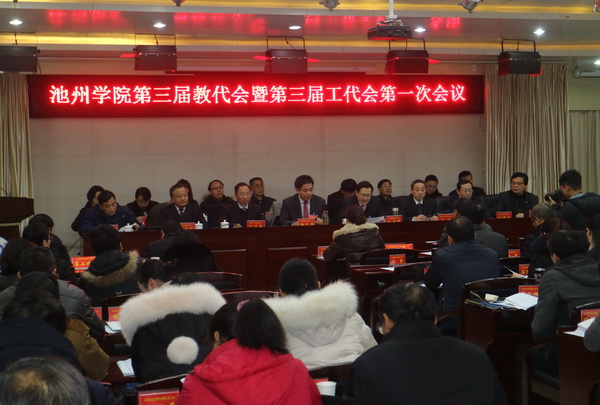 1月10日,PP电子游戏网站第三届教职工代表大会暨第三届工会会员代表大会第一次会议在行政南二楼隆重召开。校领导柳友荣、孙晓峰、王延寿、汪海、阳光宁、汪贤才出席并在主席台就坐,大会正式代表、列席代表共110余人出席大会。