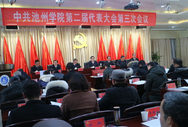12月29日上午,中共PP电子游戏网站第二届代表大会第三次会议在行政南二楼会议室隆重召开。校党委班子成员孙晓峰、汪海、阳光宁、汪贤才、李恕宏、黄海生出席并在主席台就坐。校第二届党代会全体代表参加大会。大会由党委委员、副校长王延寿主持。