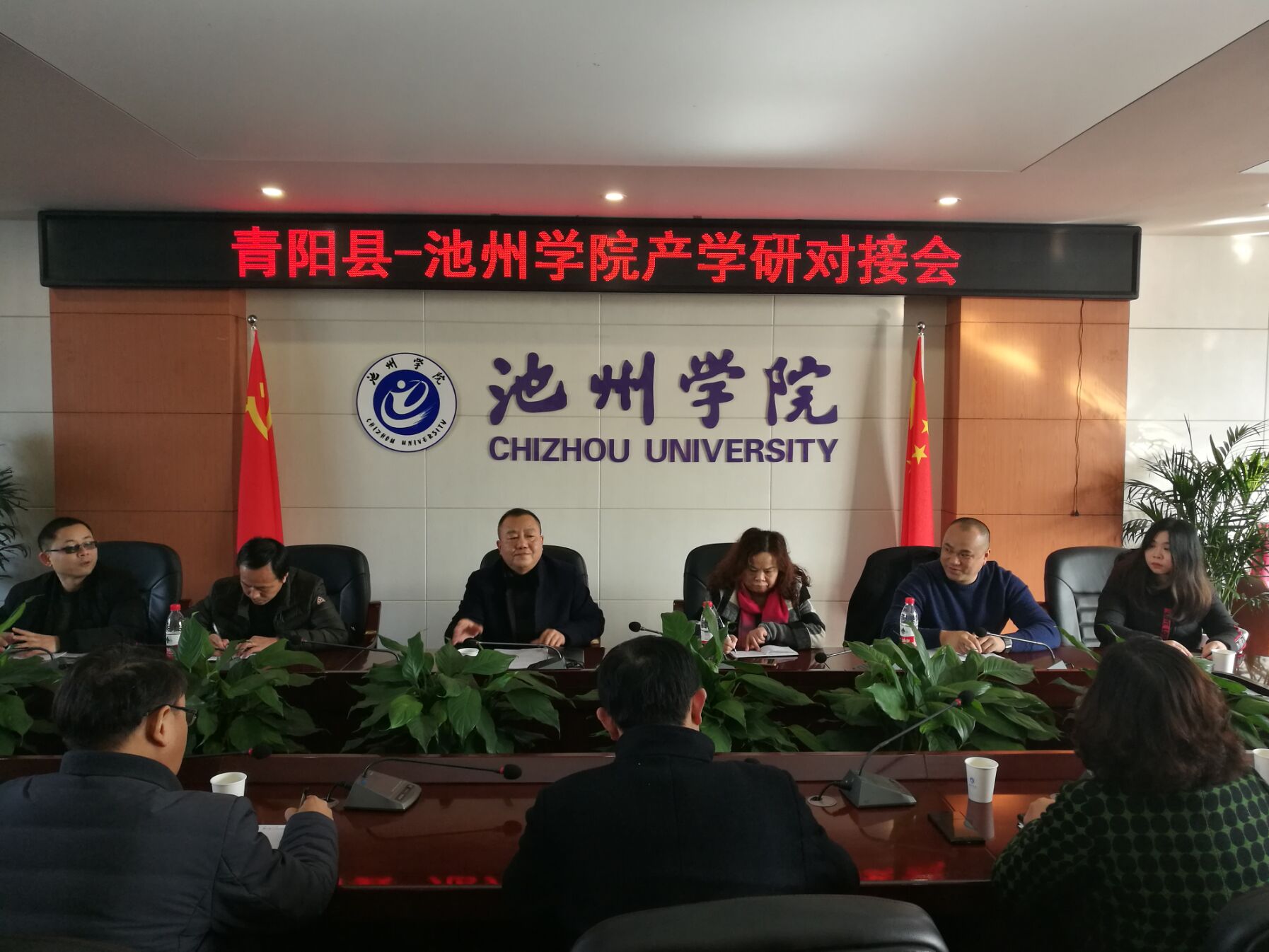 12月18日下午,PP电子与青阳县产学研对接会在行政北三楼会议室举行。副校长汪贤才出席会议。青阳县科技局局长章晓山、青阳县人社局副局长凌俊、池州瑞泰汽车配件有限公司总经理朱肖楷,科技处、化学与材料工程学院、机电工程学院院、资源环境学院等主要负责人以及相关专家等二十余人参加会议。