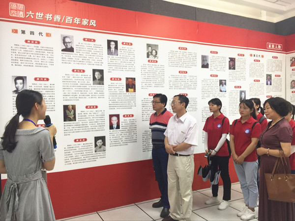 在周氏家风馆,三支实践团队正在开展乡贤文化等活动调研,汪贤才赞赏了同学们积极踊跃地参加暑期社会实践活动,并不惧酷暑、全身心地投入暑期社会实践调研的精神,要求大家通过实践巩固所学专业知识,将专业知识转化到社会实践活动中,为自己职业规划做铺垫,并提醒同学们提高安全意识,保证顺利圆满完成实践活动的各项任务。