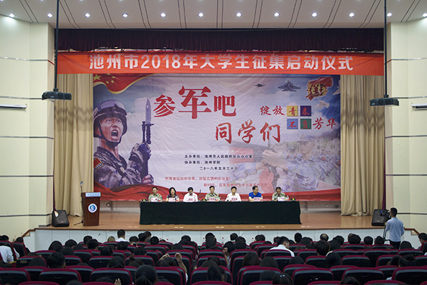 5月30日下午,池州市2018年大学生征兵工作启动仪式在PP电子博古礼堂举行。市委常委、军分区政委吴晓源,市征兵领导小组组长、副市长夏吉苗,PP电子游戏网站党委委员、副校长汪贤才,池州职业技术学院党委副书记戴申付,安徽卫生健康职业学院副院长张红,军分区动员处处长刘志林,贵池区人武部部长郑健等出席启动仪式。PP电子游戏网站、池州职业技术学院、安徽卫生健康职业学院教师、学生代表近500人参加启动仪式。仪式由军分区政委吴晓源主持。