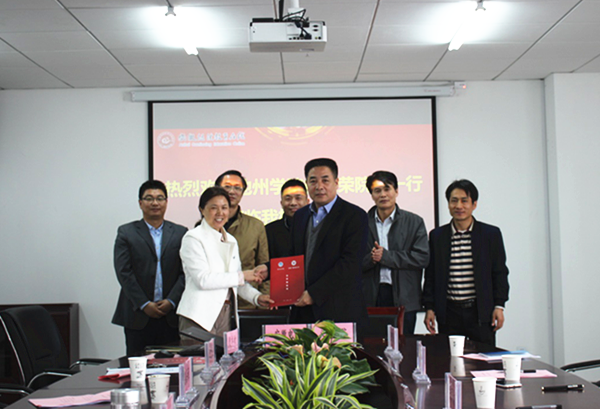 柳友荣与杜爱玉分别代表两校在合作协议上签字。