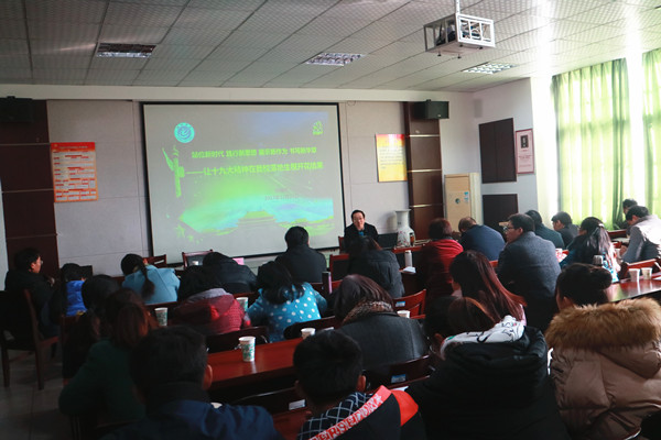 12月22日下午,校党委副书记孙晓峰在外国语学院会议室做专题报告,宣讲十九大精神。PP电子40多位党外代表人士聆听了报告。