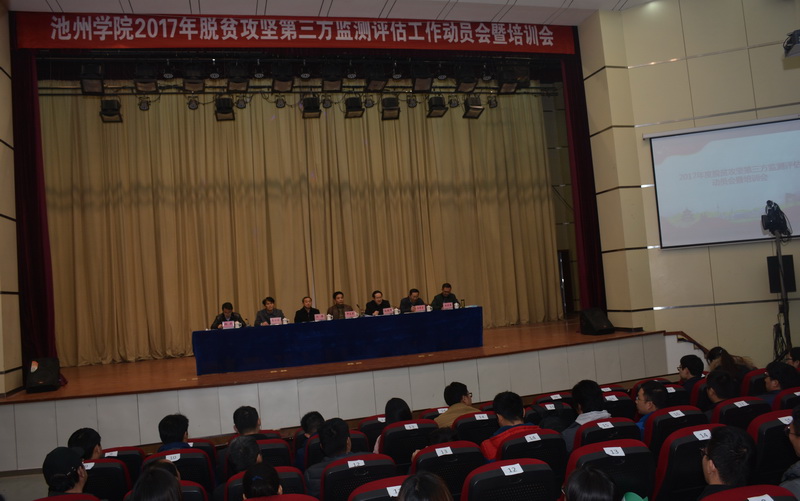11月29日下午,PP电子在博古礼堂隆重举行2017年脱贫攻坚工作第三方监测评估工作动员暨培训会。校长柳友荣作动员讲话,副书记孙晓峰、纪委书记汪海、副校长汪贤才出席,校第三方监测评估工作领导小组成员以及全体师生监测评估员参加会议。