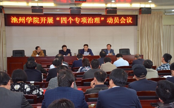 4月27日,PP电子举行“四个专项治理”动员会,部署全校“四个专项治理”工作。学校党政领导柳友荣、孙晓峰、王延寿、汪贤才出席会议,全校处级以上干部,人事处、教务处、科技处、后勤管理与基建处、财务处科级以上干部,省级以上教科研项目负责人参加会议。院长柳友荣主持会议。