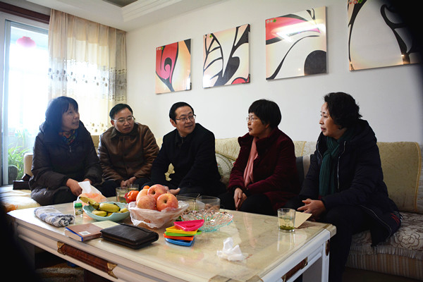 113日上午,院党委副书记、统战部长孙晓峰率院工会主席李美荣、统战部常务副部长操国胜等相关人员前往我院省政协委员、文学院教授蔡荷芳家中看望、慰问。