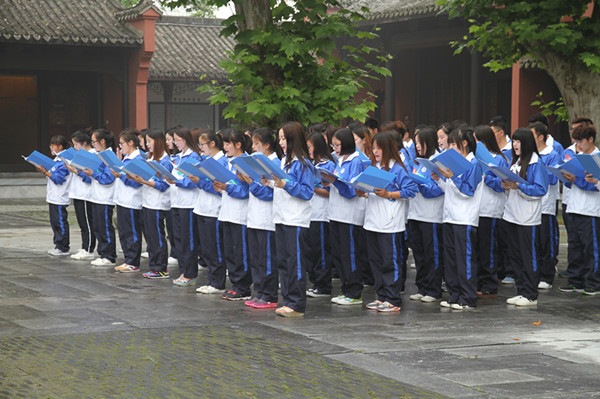 揭牌仪式结束后,为迎接第十一个中国文化遗产日,弘扬中国传统文化,旅游与历史文化学院14级文化产业管理专业全体同学在博物馆开展了“经典诵读”活动。60名同学整齐地排列在大成殿孔子塑像前,诵读儒家经典《论语》篇目,同学们声音洪亮,虔敬礼诵,展现了当代大学生蓬勃的朝气和传统儒家文化的魅力。
