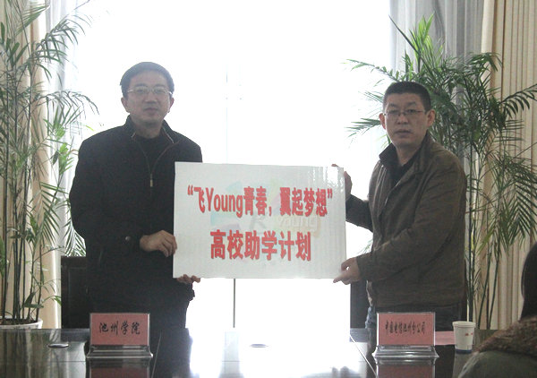 汪枫代表学校接受了中国电信池州分公司的捐助。