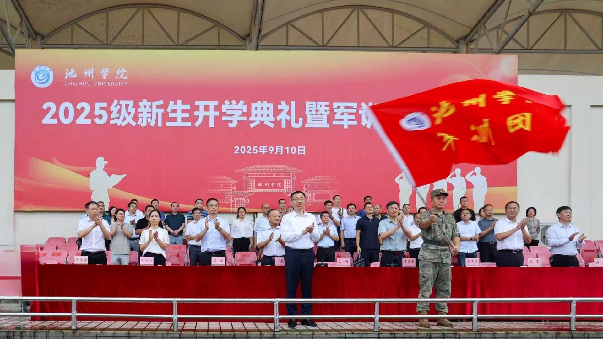 9月10日,学校在运动场举行2025级新生开学典礼暨军训动员大会。校党委书记王峰向军训团授旗,并宣布2025级新生军训正式开始。校党委副书记盛国星,党委委员、副院长阳光宁、吕刚、张赛、李明玲,承训单位军训负责人范学增,党委委员、组织部部长胡兵,党委委员、宣传部部长汤文益出席大会。大会由盛国星主持。