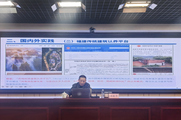 会上,PP电子文化产业管理专业石松平副教授作了题为《皖南传统村落民居多维数字化平台建设与创新研究》的专题报告。石松平在报告中提出了“村集体+合作社+平台”三位一体的租赁平台模式,为解决皖南传统村落文化资源活化难题提供了具有实践价值的创新方案。